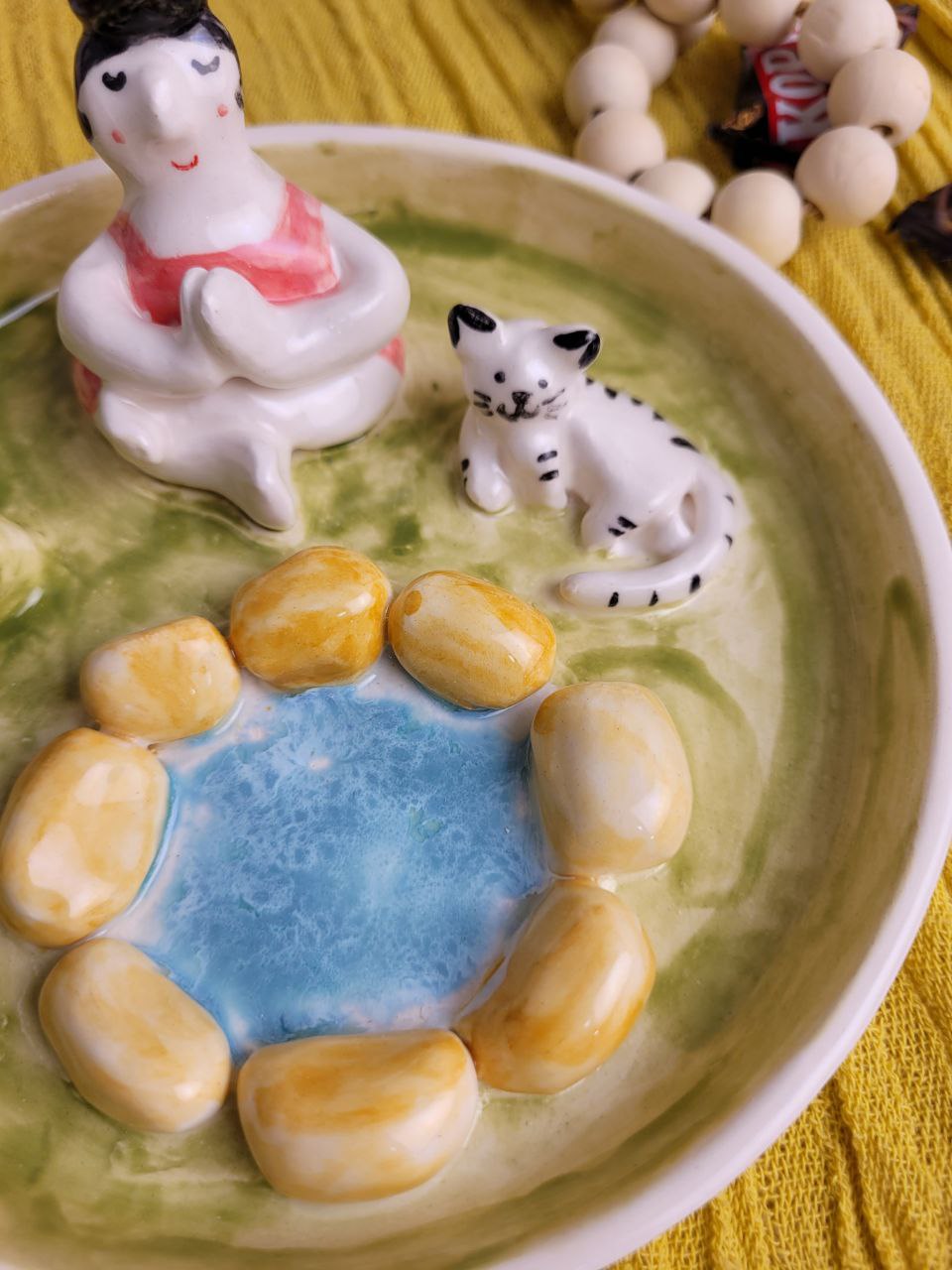 حضور خانم مهربان و گربه‌ی کنارش در کنار حوضچهٔ آبی در این مدل، حس داستانی جذابی رو به مخاطب القا میکنه.