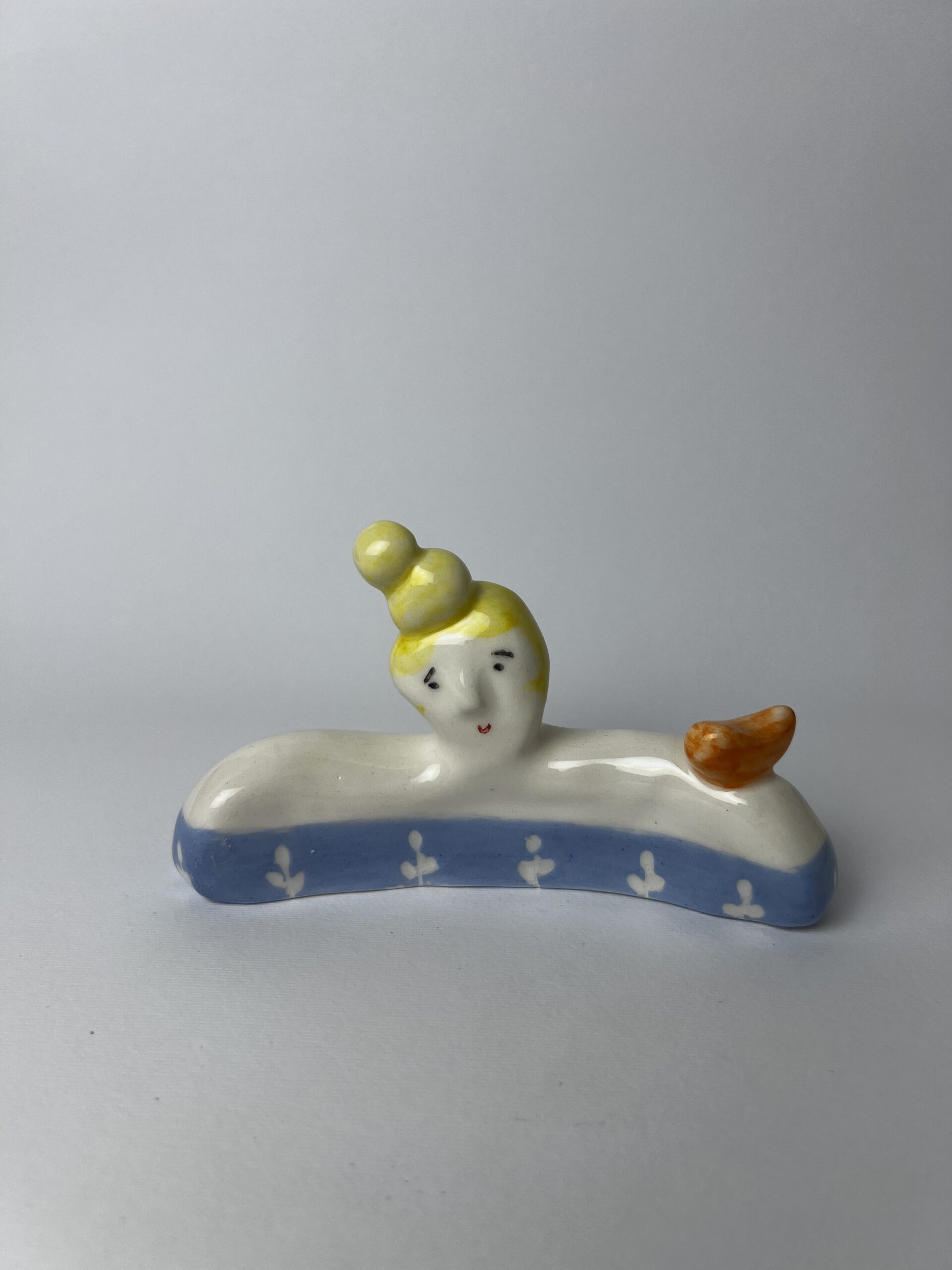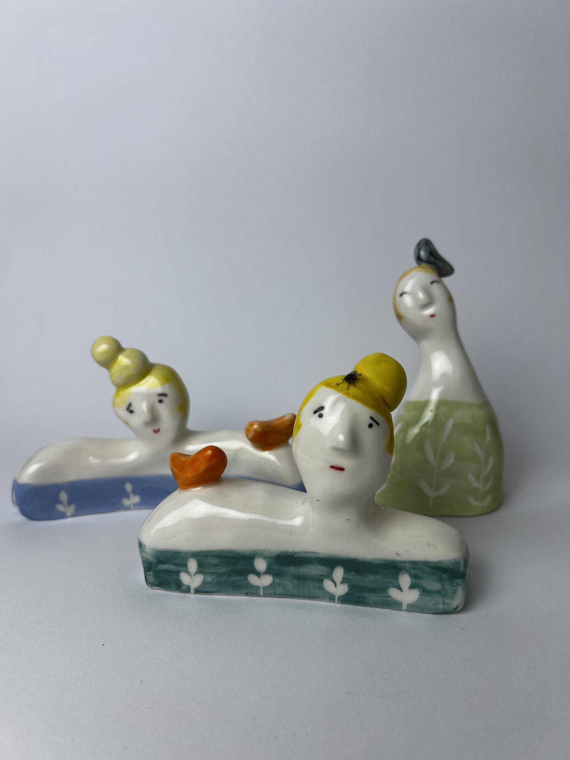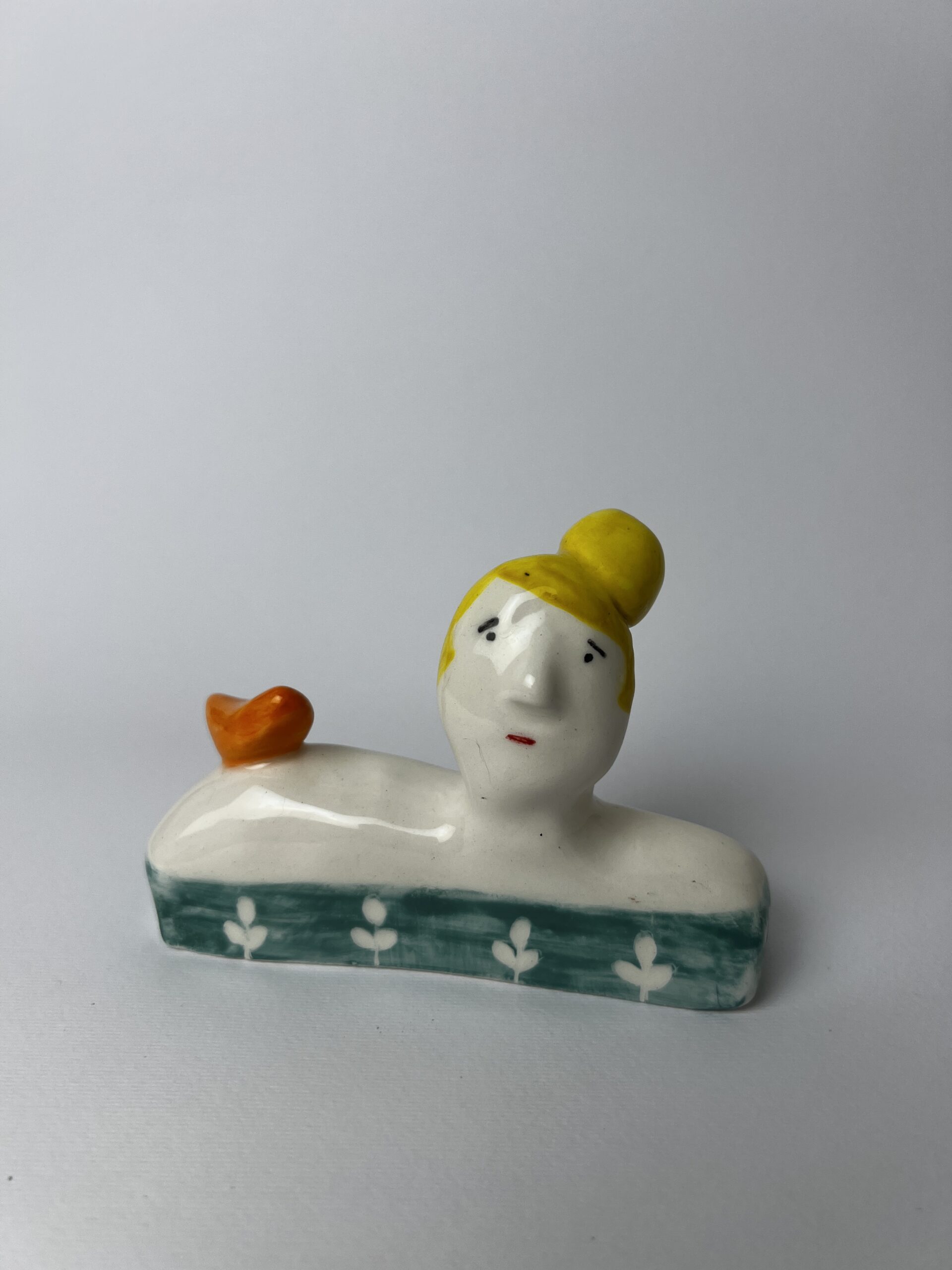 مجسمه مینیمال زن یک محصول سرامیکی ساخته شده با گل سرامیک سفید است.