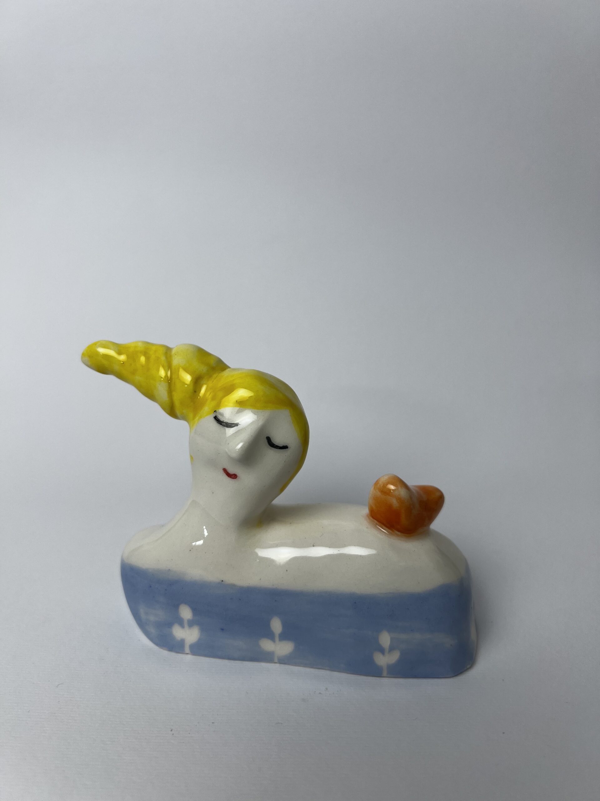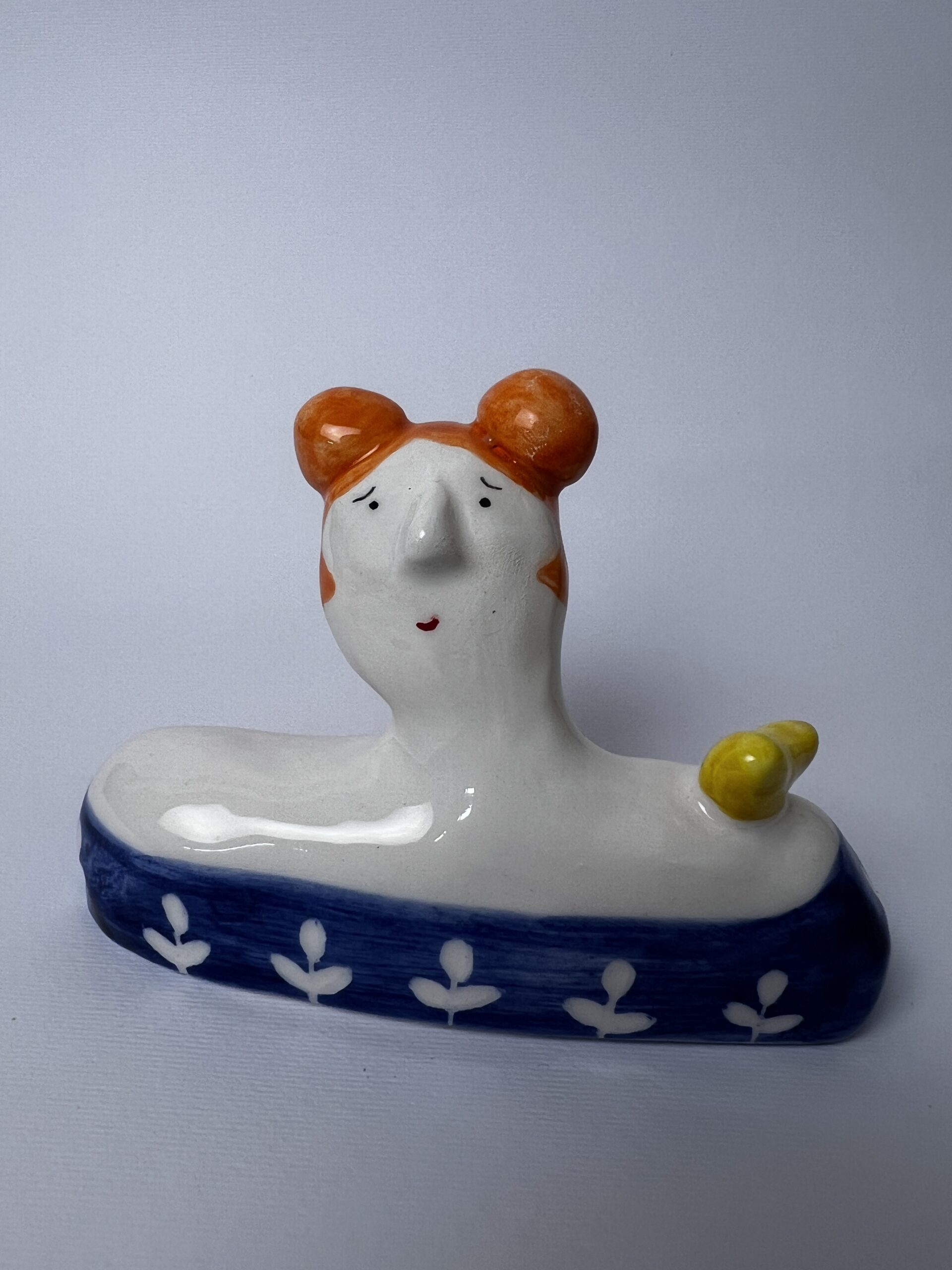 مجسمه مینیمال زن یک محصول سرامیکی ساخته شده با گل سرامیک سفید است.